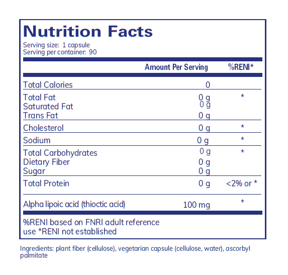 Water and lipid soluble antioxidant; supports healthy glucose metabolism and nerve habit.